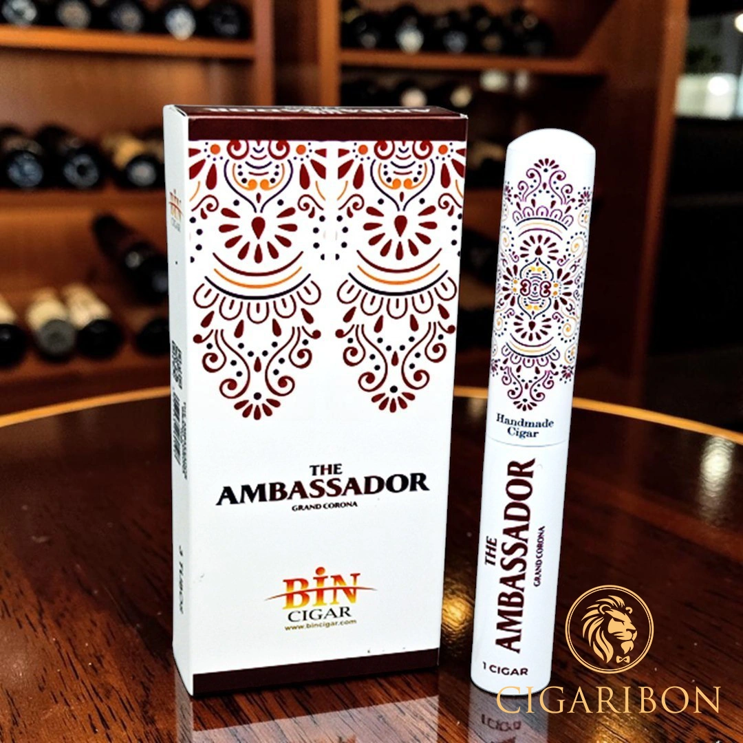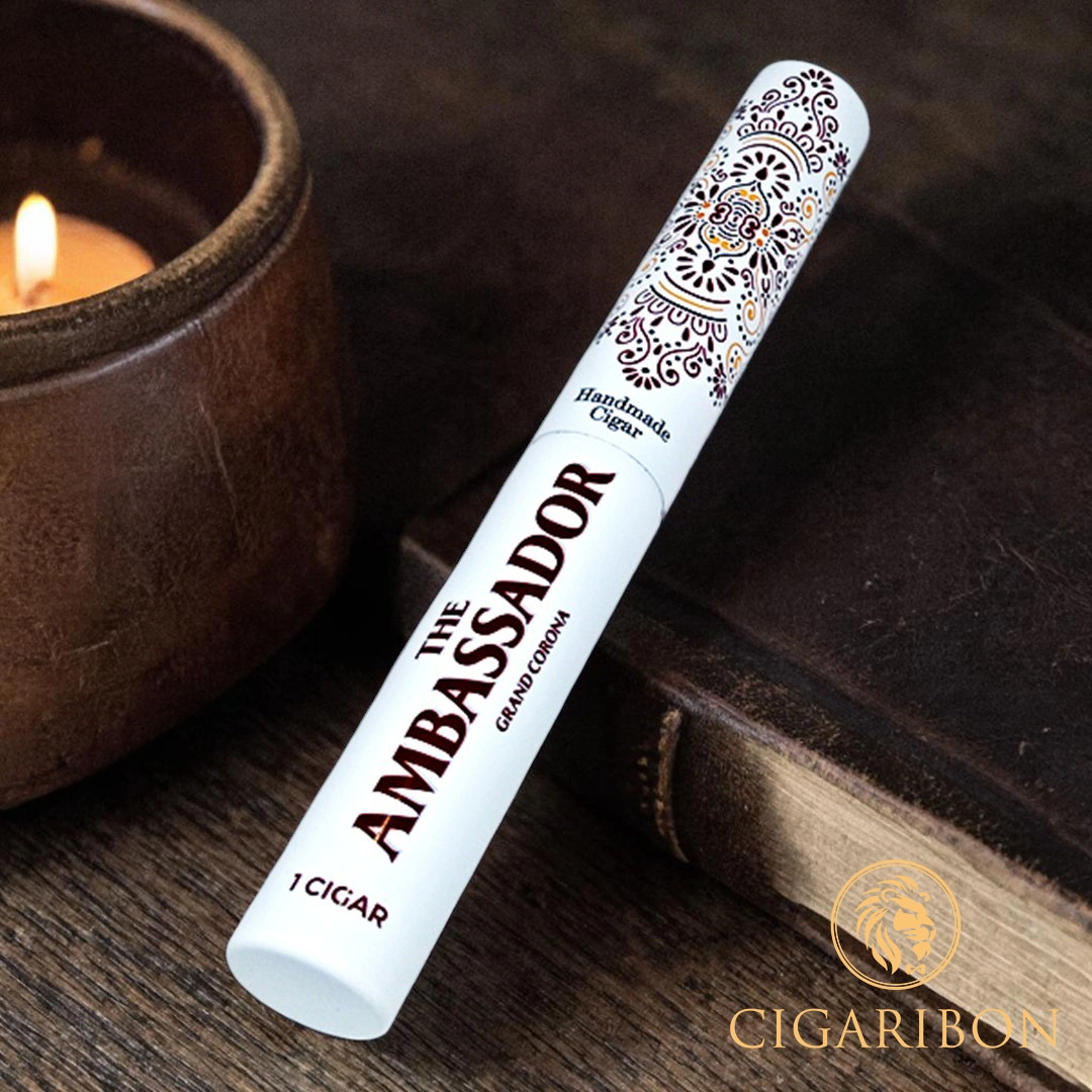 Kenalkan The Ambassador Grand Corona, cerutu premium yang dirancang khusus untuk memberikan pengalaman merokok dengan nuansa "Cuban Taste" yang mendalam. Menggunakan bahan-bahan berkualitas tinggi dari daun tembakau Havana pada bagian filler, binder, hingga wrapper-nya, cerutu ini menjanjikan konsistensi rasa yang kaya dan aroma yang memikat.